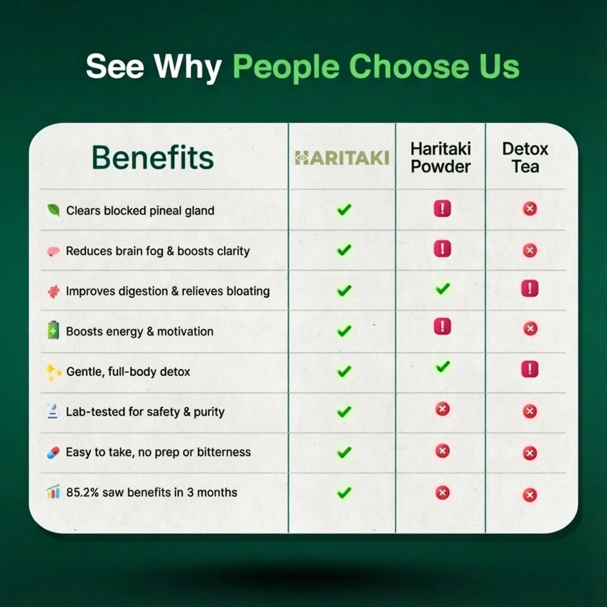 Unlike complex formulas with dozens of ingredients, Haritaki™ contains just ONE powerful ingredient: