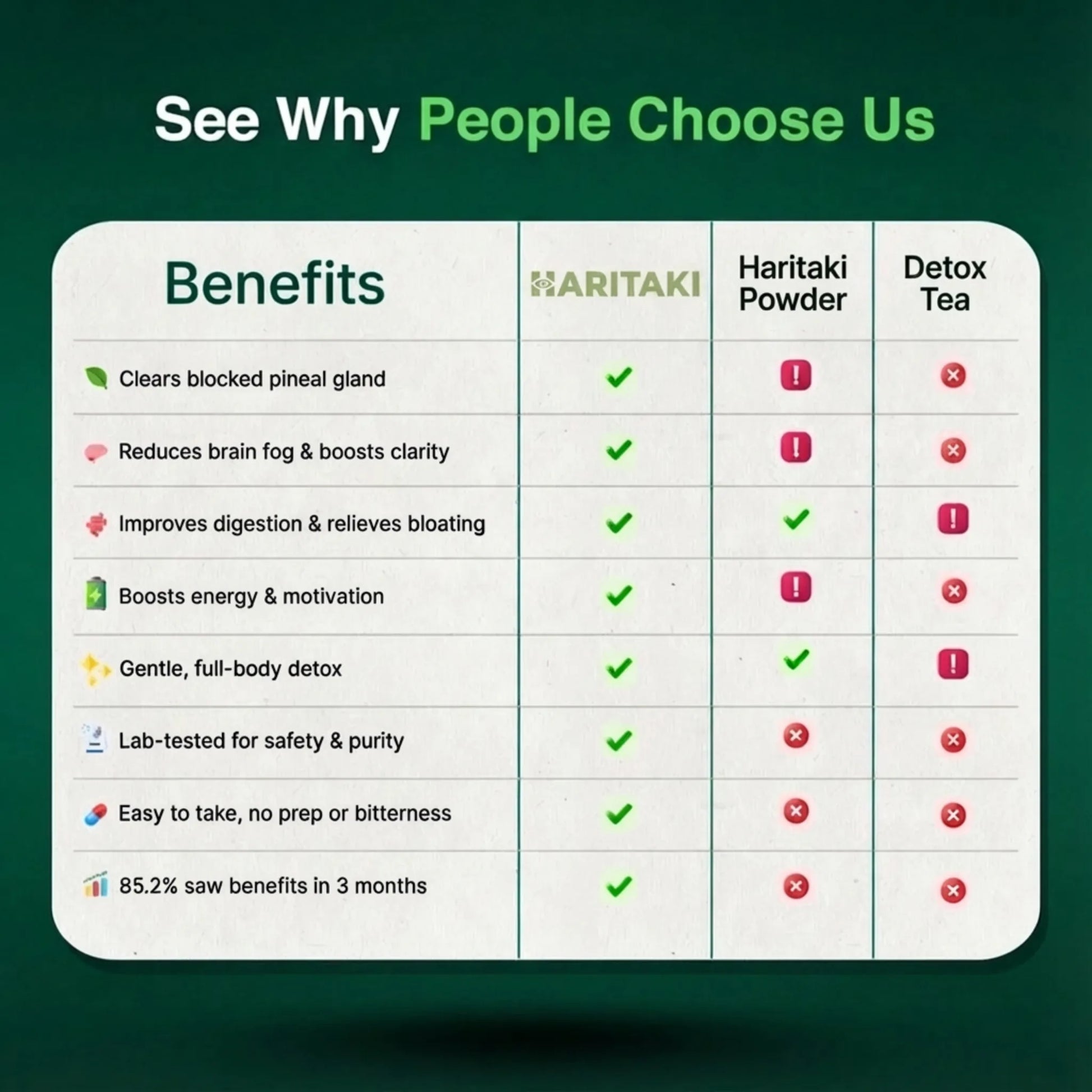 When your gut is clogged, so is your brain. Haritaki clears the pathway. Users report sharper focus and clearer thinking within weeks.